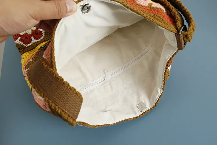 La correa de hombro ajustable permite una comodidad personalizada y un ajuste perfecto. Ya sea que prefieras llevarlo sobre tu hombro o como bolso cruzado, la correa ajustable garantiza que llevar este bolso tejido sea cómodo, ya sea que vayas al mercado, asistas a un festival o disfrutes de una salida de fin de semana.