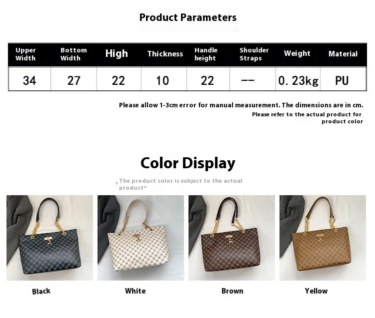 A pesar de su diseño compacto, el Bolso de hombro con cadena y textura retro ofrece un interior bien organizado, perfecto para guardar todos tus objetos esenciales diarios, como el teléfono, la cartera, las llaves, el maquillaje e incluso una tableta pequeña. Su diseño multicompartimental te permite mantenerte organizado, mientras que el cierre seguro protege tus pertenencias durante todo el día. 4. Ligero y cómodo: el diseño ligero de este bolso lo hace perfecto para tus desplazamientos diarios. Ya sea que vayas a la oficina o a hacer recados, puedes llevarlo fácilmente todo el día sin ninguna molestia. Su estructura suave lo hace cómodo y fácil de llevar, sin importar la ocasión. 5. Versátil para diversas ocasiones: el bolso de hombro con cadena y textura retro para el día a día está diseñado para ser multifuncional. Su aspecto clásico y atemporal lo hace adecuado para una variedad de entornos, ya sea un look de oficina, una salida de fin de semana o un evento nocturno más elegante. Este bolso puede pasar fácilmente del día a la noche, lo que garantiza que te mantengas elegante en cualquier situación.