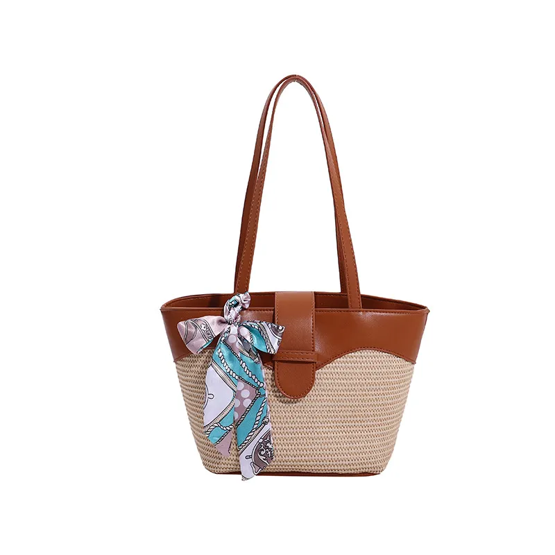 Bolso de hombro con lazo y bufanda de seda sencilla de moda para mujer