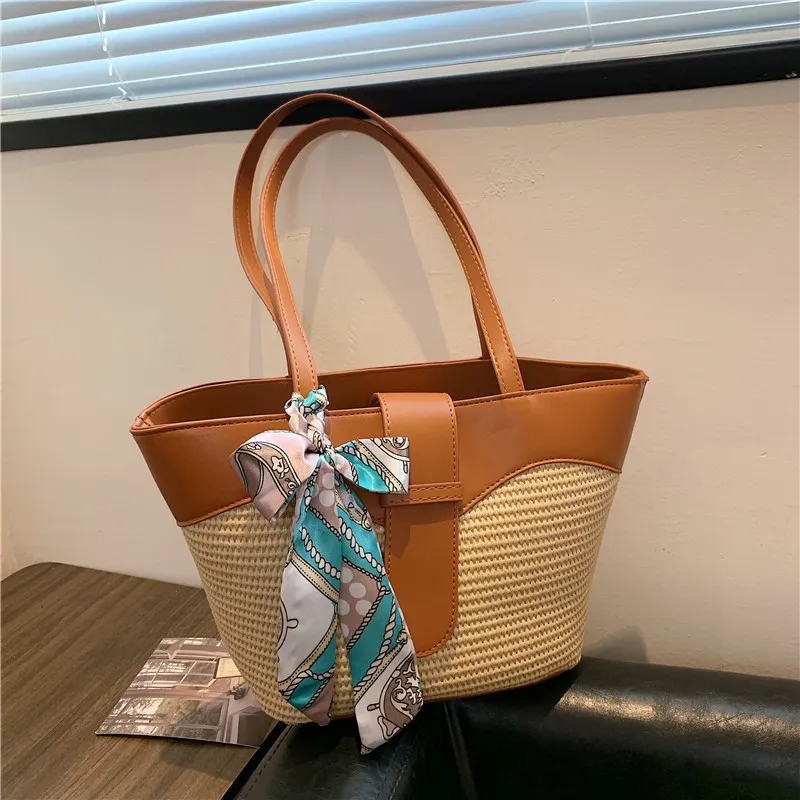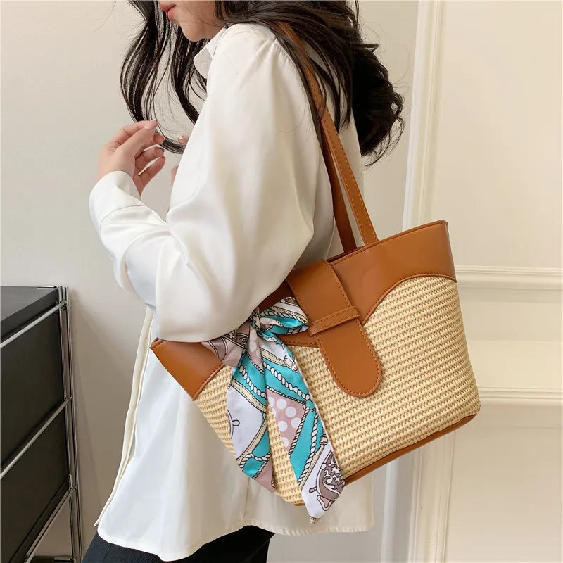 Bolso de hombro con lazo y bufanda de seda sencilla de moda para mujer