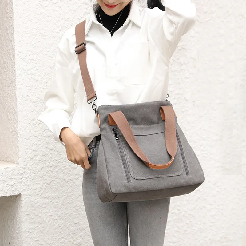 Bolso de lona para mujer, combinable, portátil, de gran capacidad, informal, para hombro