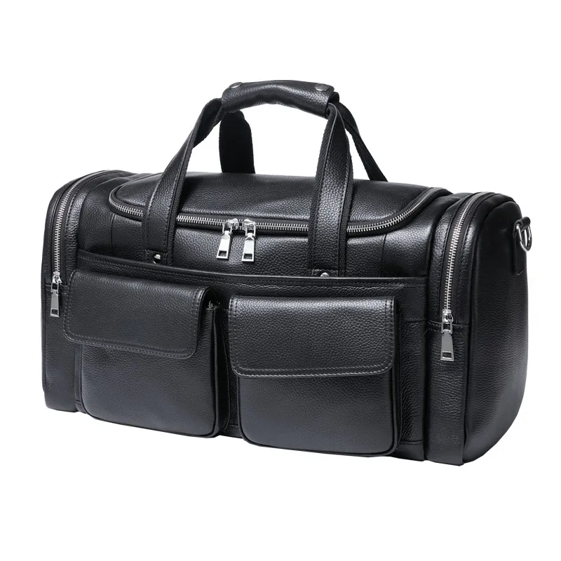 Presentamos el bolso de viaje de mano de cuero para hombre, de gran capacidad y corta distancia, una combinación perfecta de estilo y funcionalidad para el viajero moderno. Fabricado en cuero de alta calidad, este bolso de viaje está diseñado para soportar las exigencias de los viajes cortos, ofreciendo amplio espacio para tus objetos esenciales. Su diseño elegante y sofisticado lo convierte en el compañero ideal para escapadas de fin de semana, viajes de negocios o desplazamientos diarios. Este bolso de viaje de gran capacidad cuenta con un espacioso compartimento principal que acomoda cómodamente ropa, artículos de aseo y otros artículos esenciales de viaje. Sus bolsillos interiores, cuidadosamente diseñados, te ayudan a mantenerte organizado, permitiéndote acceder fácilmente a tus pertenencias cuando las necesites. Con su generoso tamaño y diseño práctico, este bolso es perfecto para quienes aprecian la comodidad sin sacrificar el estilo. Diseñado para la comodidad y facilidad de uso, el bolso de viaje de mano para hombre incluye asas superiores resistentes para un transporte fácil, así como una correa de hombro desmontable para tener las manos libres. La construcción de cuero atemporal no solo mejora su apariencia sino que también garantiza durabilidad, permitiendo que el bolso desarrolle una hermosa pátina con el tiempo. Ya sea que vayas al gimnasio, te vayas de viaje de fin de semana o hagas recados diarios, el bolso de viaje de corta distancia de gran capacidad y cuero para hombre es tu accesorio ideal para todas tus necesidades de viaje.