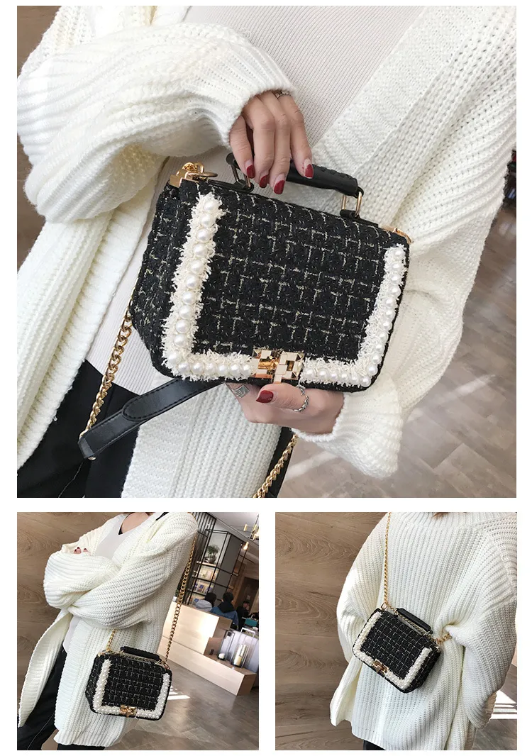 Bolso de mano de lana con personalidad a la moda para chica, bolso de mensajero a cuadros