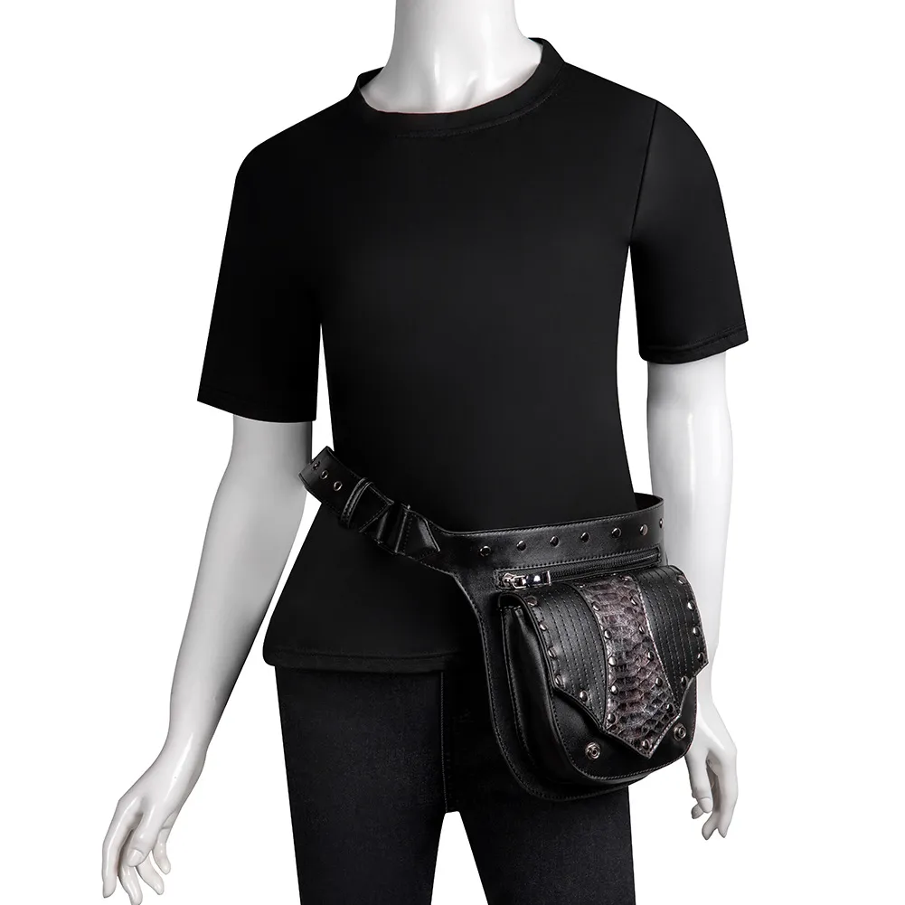 Este bolso es increíblemente versátil, diseñado para usarse de diversas maneras. Ya sea como bandolera, riñonera o incluso como bolso de pierna, las correas ajustables garantizan comodidad y practicidad en todos los estilos. Esta característica multiusos la hace ideal para diversas ocasiones, desde una salida informal hasta una convención steampunk o un evento gótico.