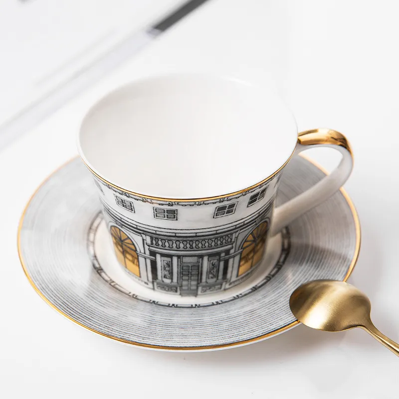 With its refined gold edge and elegant bone china material, this coffee cup set adds a touch of luxury to any table setting. The sophisticated design makes it perfect for both everyday use and formal occasions, ensuring that it complements any dining style. Whether you're enjoying a quiet afternoon with a cup of tea or serving coffee to guests at a dinner party, this set enhances your table’s appearance and sets the stage for memorable moments.