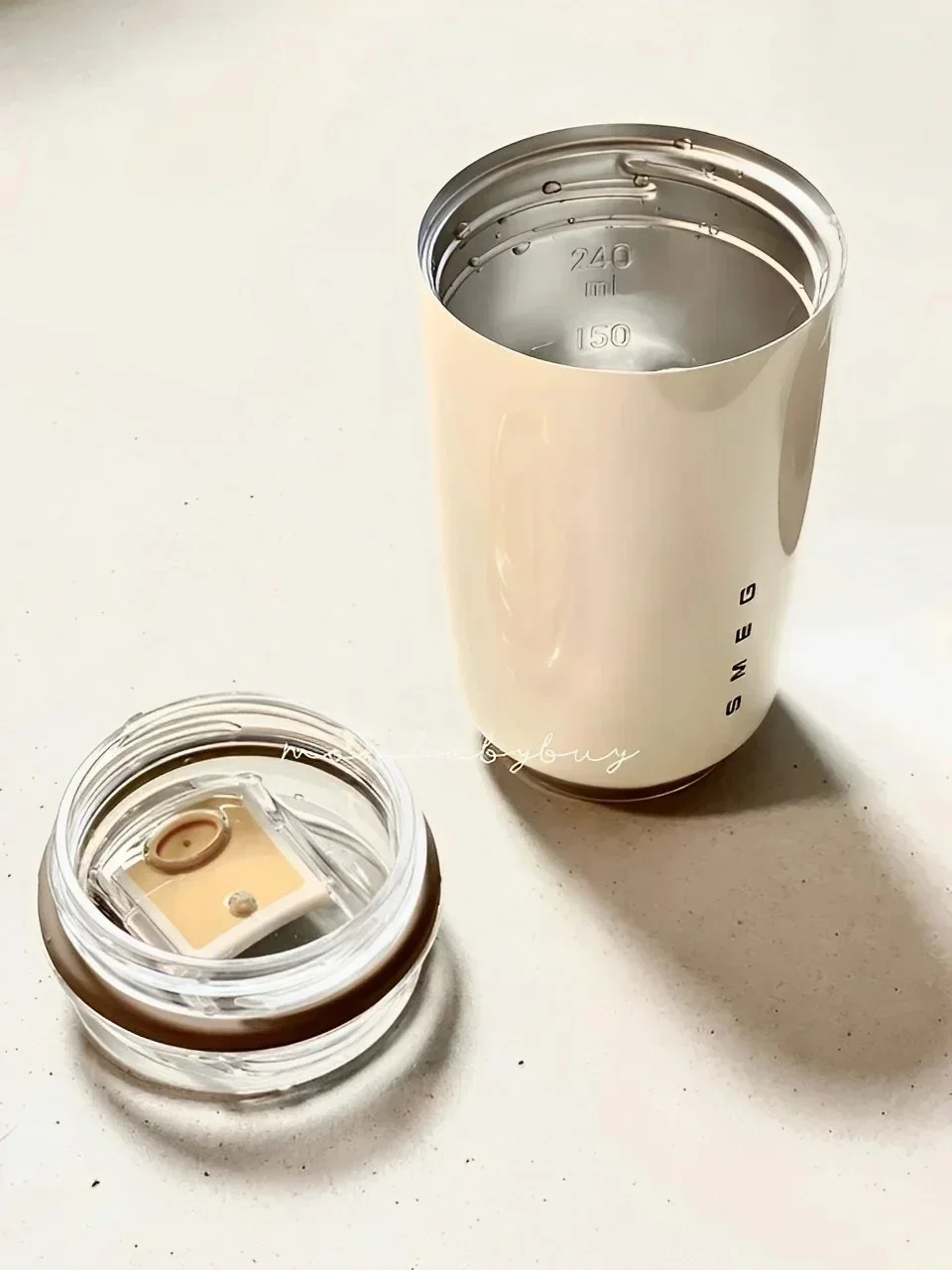 La botella de agua con aislamiento de acero inoxidable de 350 ml de SMEG combina estilo, durabilidad y funcionalidad en una práctica taza de viaje, perfecta para el uso diario. Diseñado para mantener tus bebidas a la temperatura ideal, este termo es apto tanto para bebidas frías como calientes, lo que lo convierte en un excelente compañero para hidratarte sobre la marcha. Fabricado en acero inoxidable de alta calidad, el termo SMEG está aislado para mantener la temperatura durante horas, asegurando que tu café se mantenga caliente por la mañana y el agua fría durante todo el día. Ya sea que lo uses como taza de café, botella de agua o taza de viaje, este termo elegante y compacto es un accesorio imprescindible para el trabajo, los viajes o el ocio.