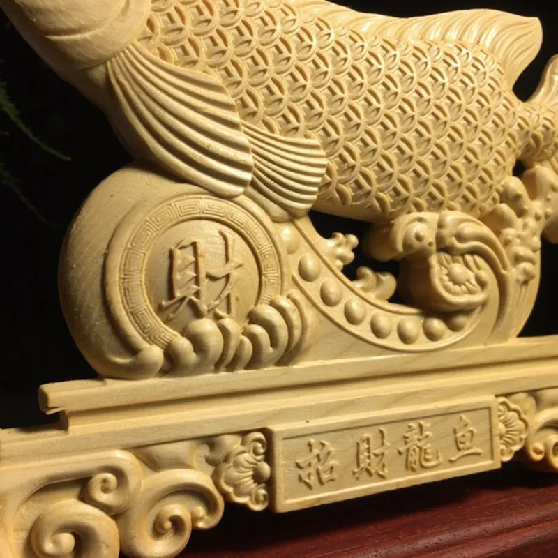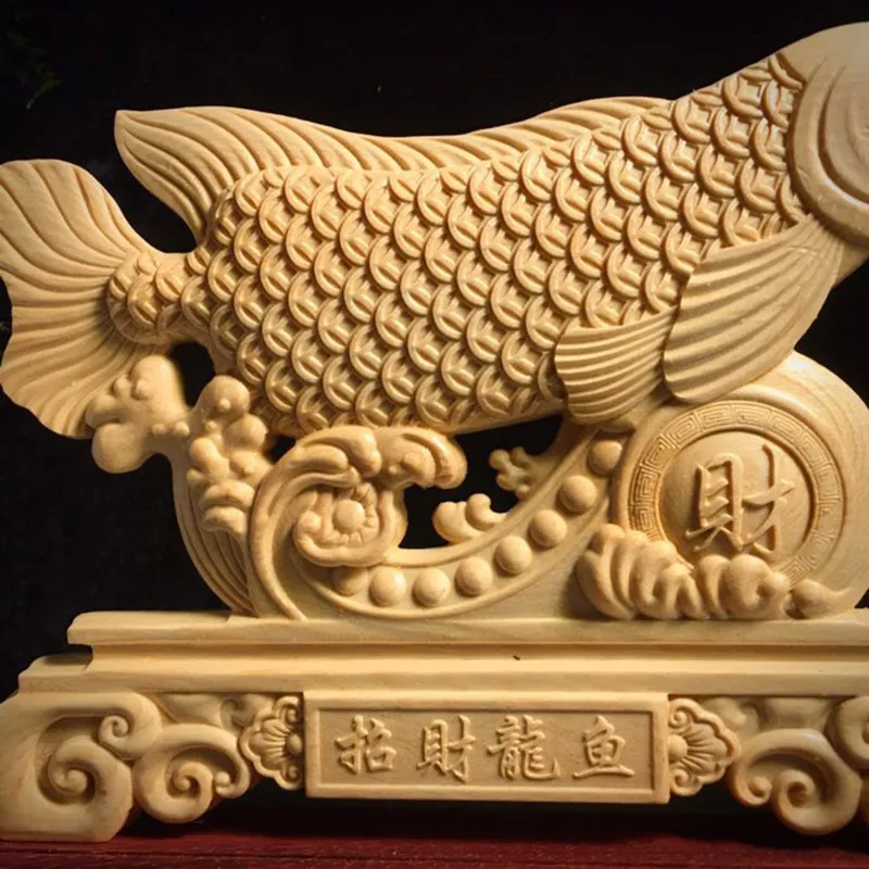 Boxwood Finely Carved Lucky Dragon Fish Ornaments Dragon Fish Desk Surface