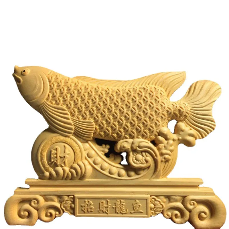 Boxwood Finely Carved Lucky Dragon Fish Ornament: Elegance and Prosperity for Your Desk