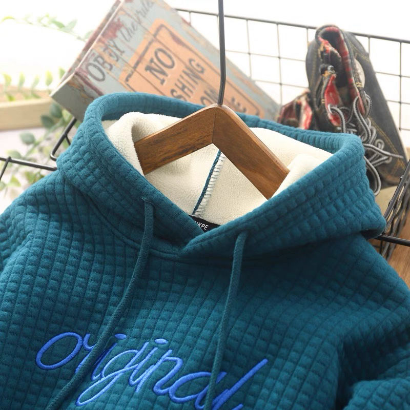 The Boys' Plus Fleece Hoodie Cuhk Children's Embroidered Whole Velvet Sweatshirt combines exceptional warmth, comfort, and style. Crafted with soft, plush fleece and detailed with elegant embroidery, this hoodie is the ultimate wardrobe essential for boys. Ideal for school, casual outings, or outdoor play, it provides unmatched coziness during chilly days while keeping your little one effortlessly stylish.