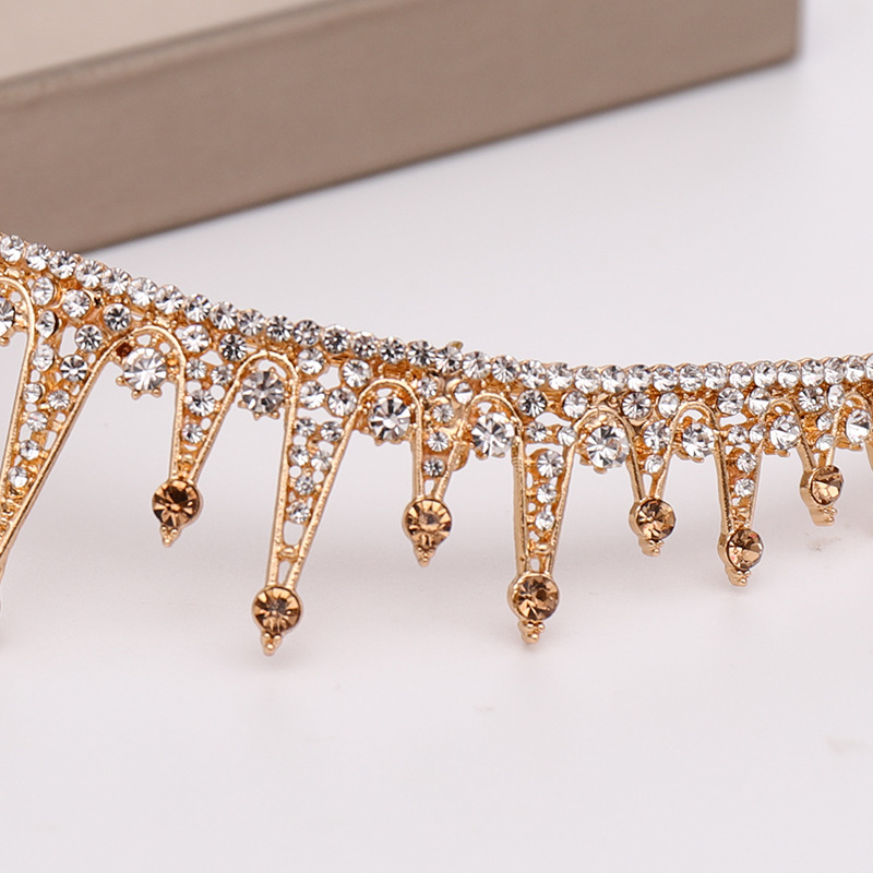 The Baroque design of this crown headband features ornate patterns with detailed curves and flourishes, giving it a luxurious, vintage-inspired aesthetic. This intricate design adds a dramatic, royal touch to your wedding look, making it a perfect choice for brides who want a timeless yet bold accessory. The Baroque style, known for its lavishness and attention to detail, enhances the beauty of any bridal hairstyle, whether you're going for an updo, soft waves, or a classic chignon.