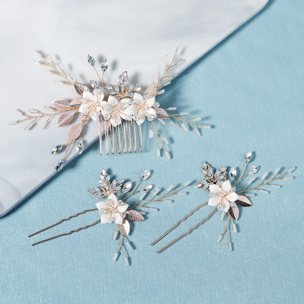 The flower rhinestones embellishments on the comb are what set this piece apart from traditional bridal accessories. These intricate floral designs, highlighted by sparkling rhinestones, give the comb a refined and sophisticated appearance. The shimmering rhinestones catch the light beautifully, adding a delicate, ethereal glow to your hair, especially in your wedding photos. The flowers, with their intricate detailing, evoke a sense of romance and timeless beauty that is perfect for the bride who wants to feel like a queen on her special day.