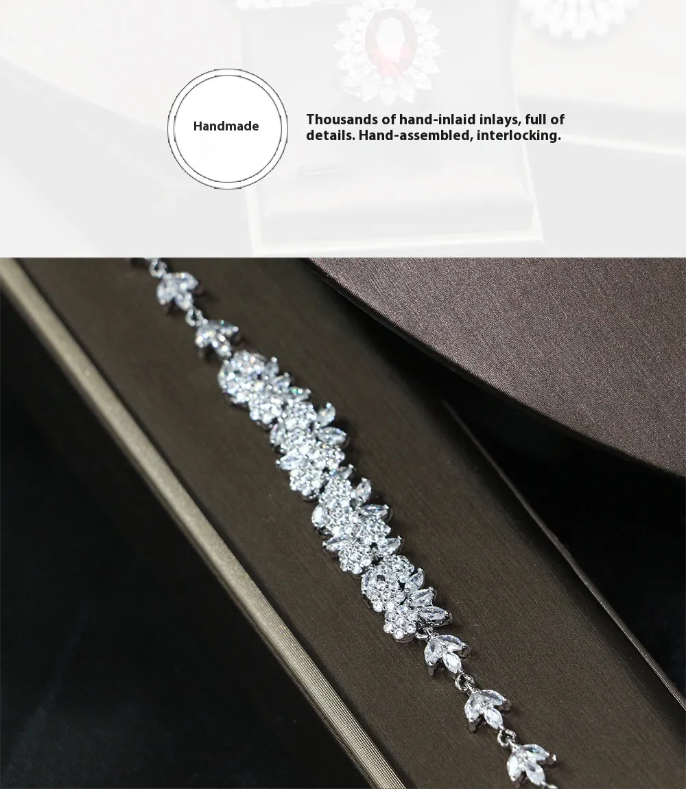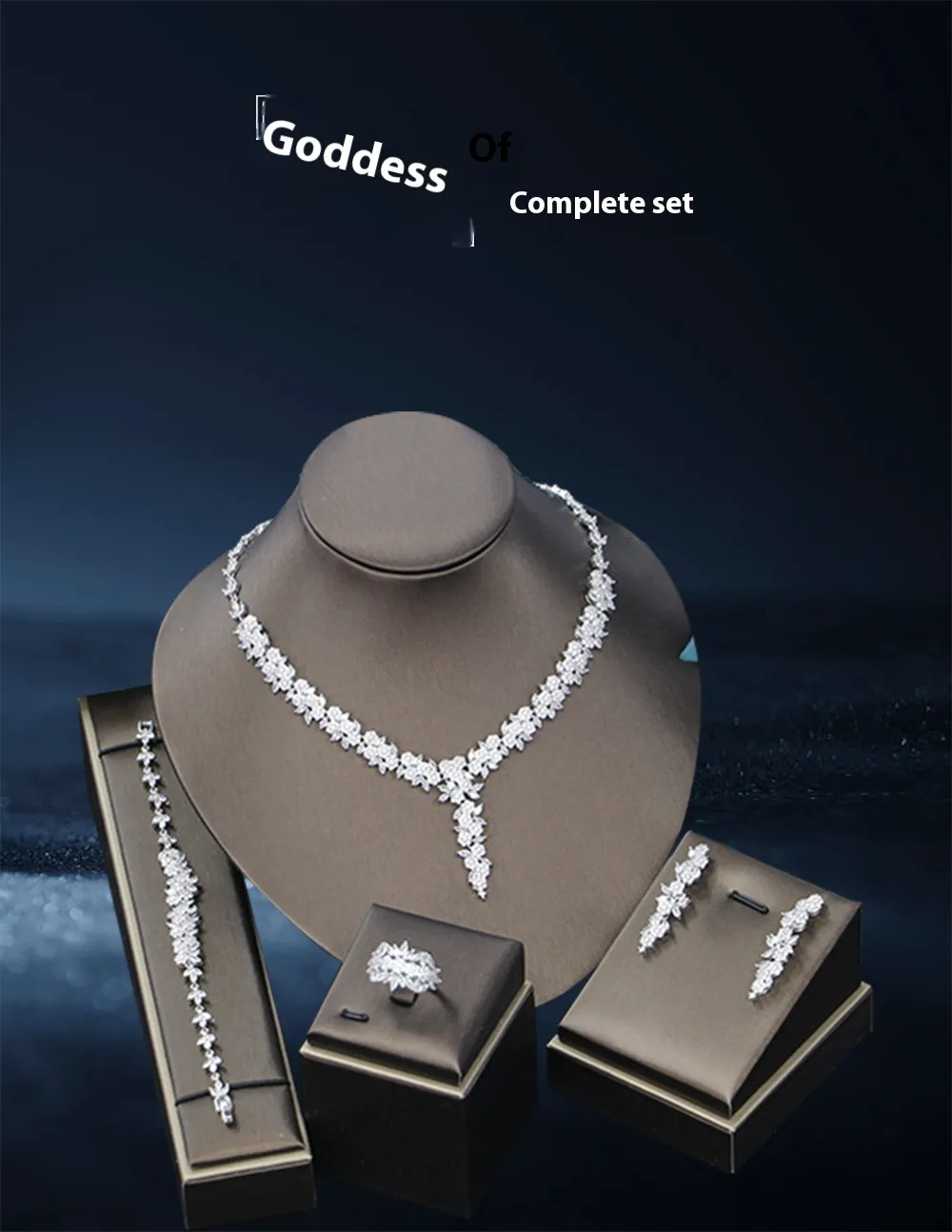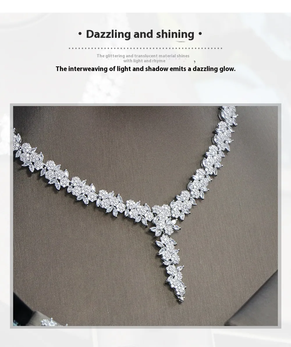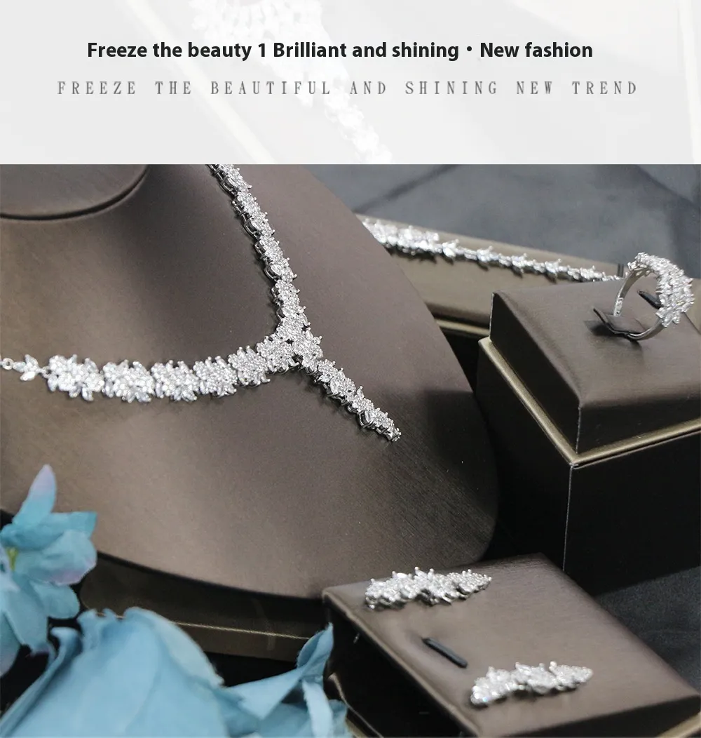 Bridal Wedding Dinner Jewelry Suit Fashion Rose Zircon Necklace Earrings Four-piece Set