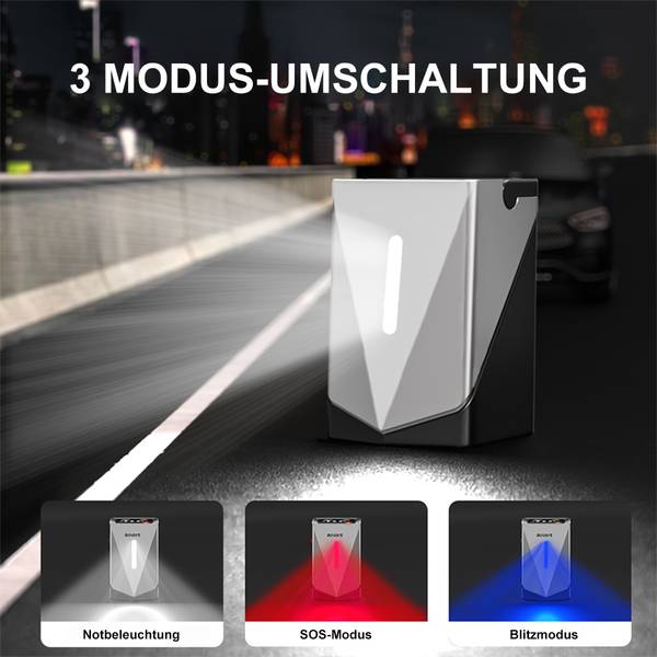 The built-in power bank feature allows you to charge phones, GPS devices, tablets, dashcams, and other small electronics via USB, making it extremely useful during emergencies, camping trips, or when your phone battery unexpectedly dies. The LED flashlight includes multiple light modes such as SOS, strobe, and steady beam for visibility and roadside safety.