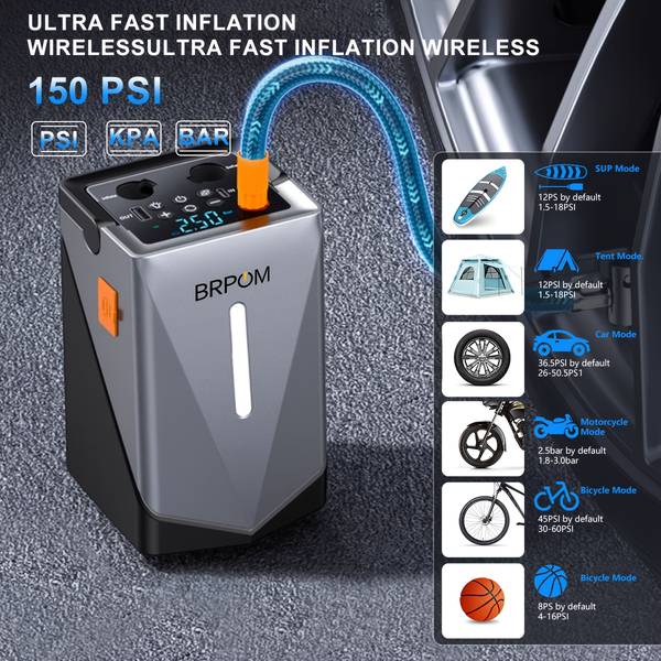 The built-in inflator quickly restores tyre pressure on the go. Perfect for puncture recovery, off-road tyre adjustments, bike tyres, inflatable sports gear, and emergencies.