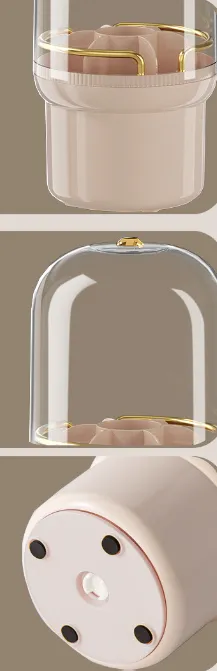 Maintenance is straightforward. The container can be wiped clean with a damp cloth to remove dust or cosmetic residue. Smooth surfaces ensure easy cleaning, maintaining a hygienic storage environment.