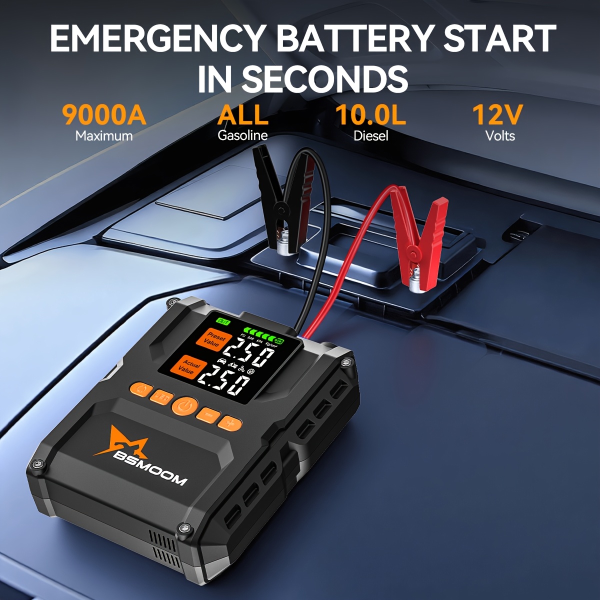 BSMOOM 9000A Portable Car Jump Starter With Air Compressor, car jump starter NZ, portable jump starter, tire inflator pump, car emergency kit, portable power bank car, roadside emergency tool, car battery booster