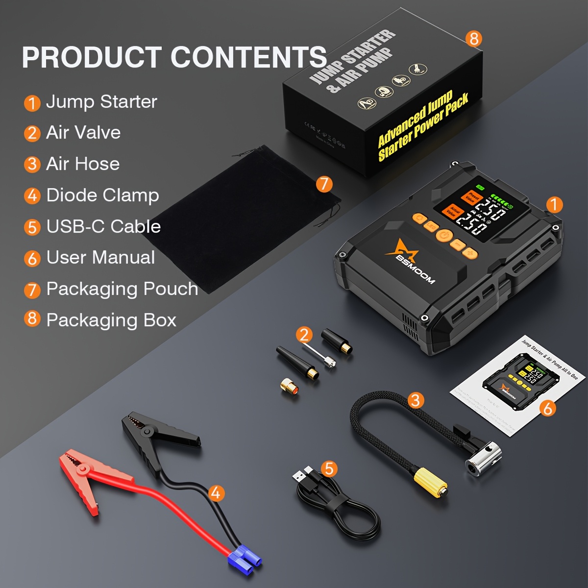Overall, BSMOOM 9000A Portable Car Jump Starter | With Air Compressor offers a multi-functional solution that improves safety, convenience, and preparedness for drivers.