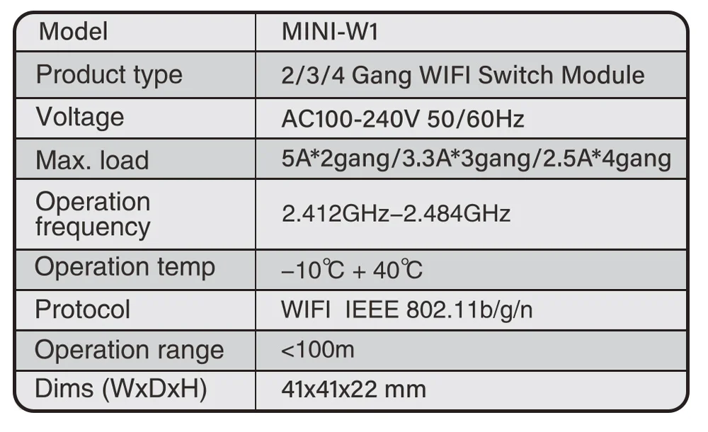 Model Number: WiFi Mini DIY Smart Switch