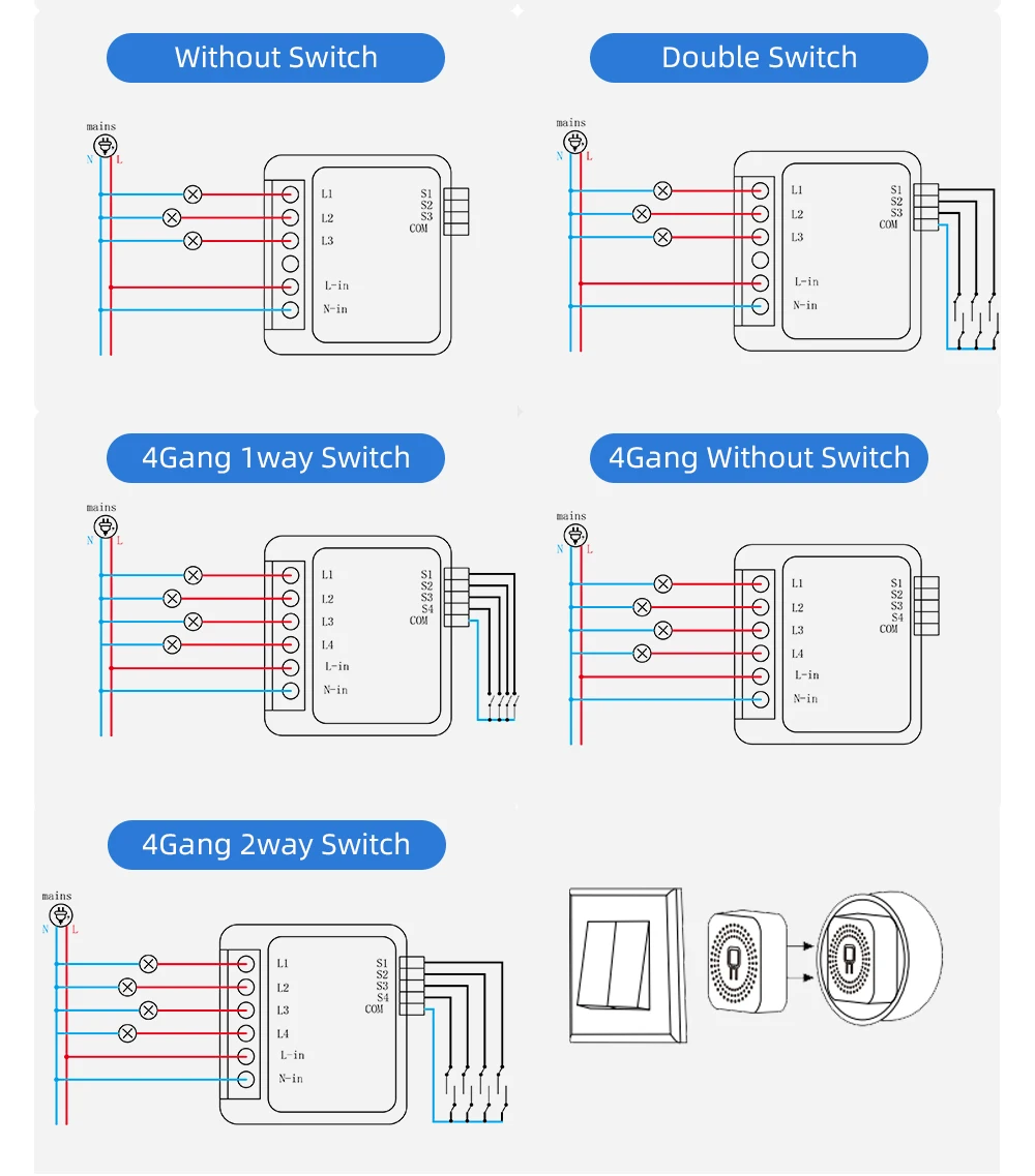 Product type 2: 2 Gang/3 Gang/4 Gang WiFi Switch Module