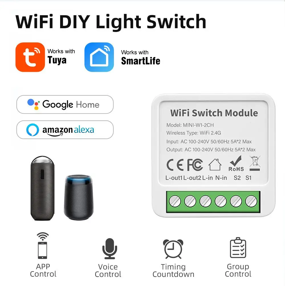 Bundle: Bundle4, Ships From: CHINA - Tuya WiFi Mini DIY Smart Switch 1/2/3/4 Gang 16/10A 2 Way Control Smart Home Automation Module Via Alexa Google Home Smart Life