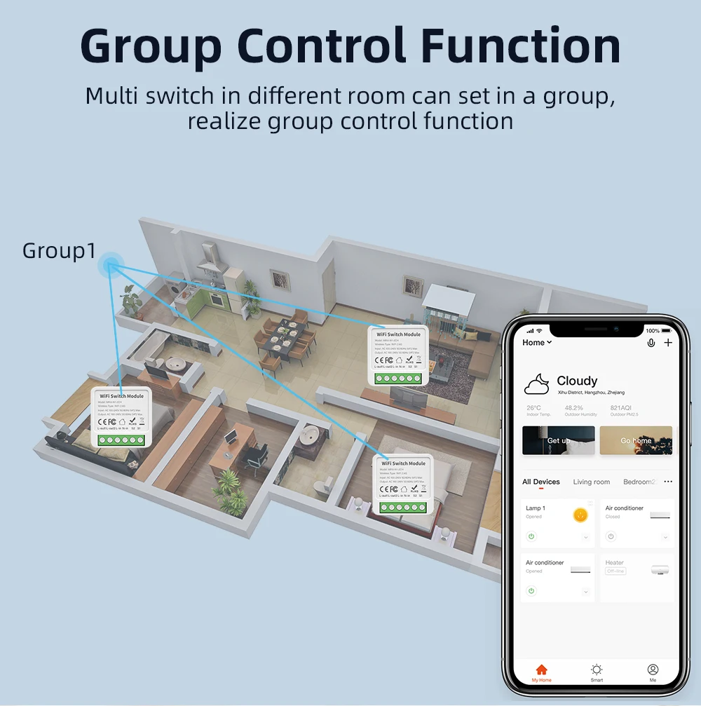 [ Group-Control Function ] -Multi switch in different room can set in a group ,realize group control function.