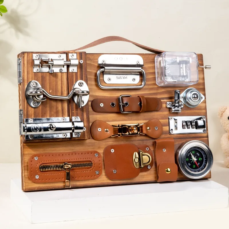 Activities on the busy board—like turning knobs, latching doors, or zipping zippers—are great for developing fine motor skills and hand-eye coordination. These actions help children strengthen the muscles in their hands and fingers, which is essential for later tasks like writing.