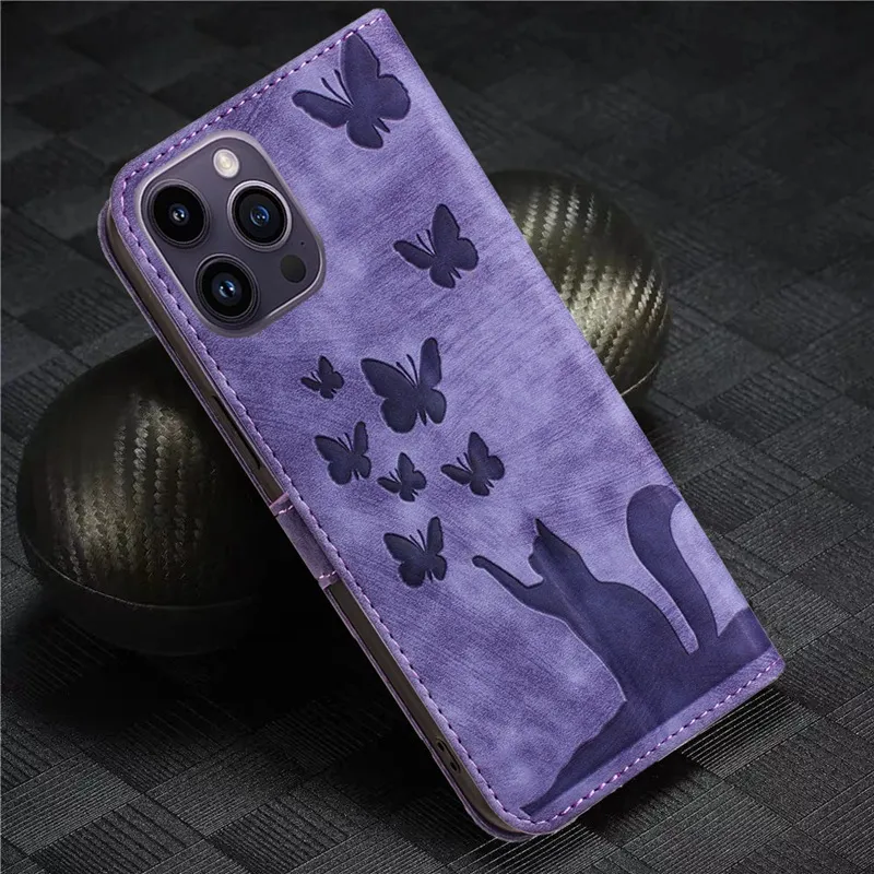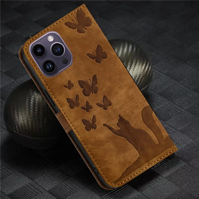 Add a touch of charm to your phone with the Butterfly Cat Embossed Phone Leather Case. Featuring a beautifully embossed butterfly and cat motif, this case blends playful artistry with timeless style. Perfect for New Zealanders who love accessories that express personality while offering reliable protection.
