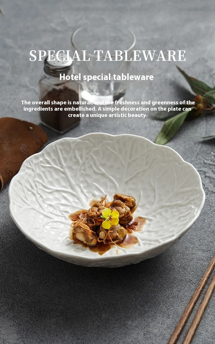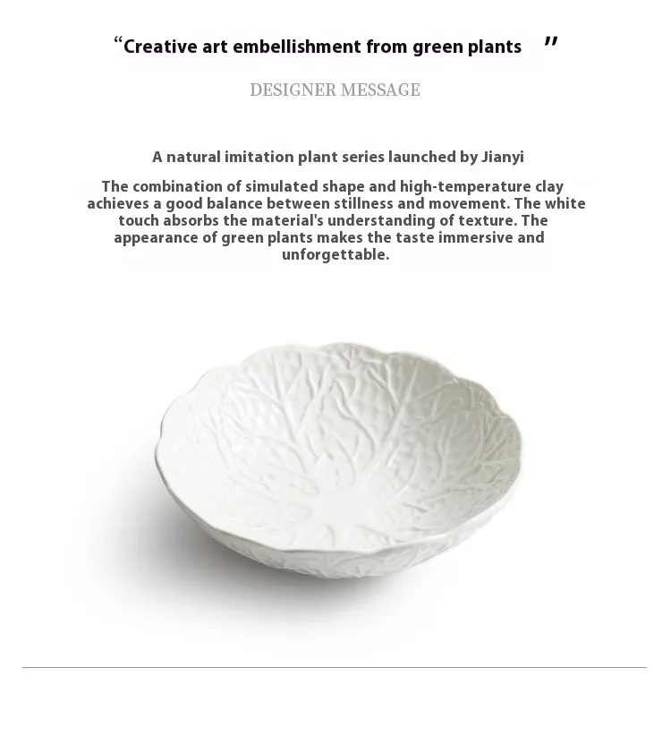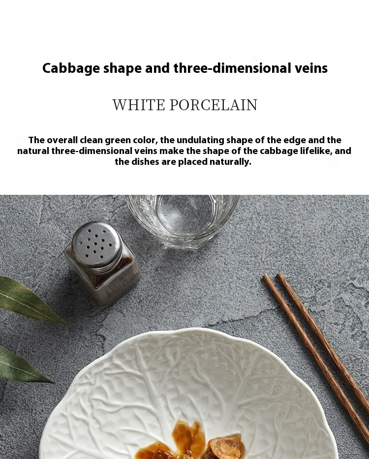 The bowl features a wide rim for comfortable handling and stability during use. Its depth is calibrated to prevent spillage when mixing sauces, oils, or dressings into vegetable noodles. Unlike shallow plates that restrict movement or overly deep containers that conceal presentation, the Cabbage Noodle Bowl achieves an ideal balance between visibility and functionality.