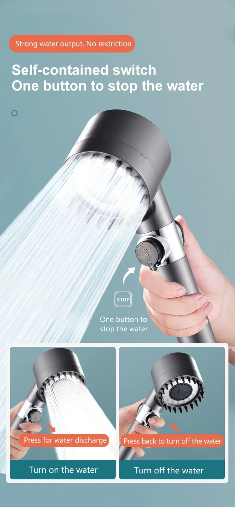 Diseñado para promover la salud y la belleza de la piel, este cabezal de ducha multifuncional incorpora características innovadoras como la filtración de iones negativos y la tecnología de microneblina. Estos elementos ayudan a purificar y suavizar el agua, proporcionando una experiencia refrescante y nutritiva para la piel y el cabello.