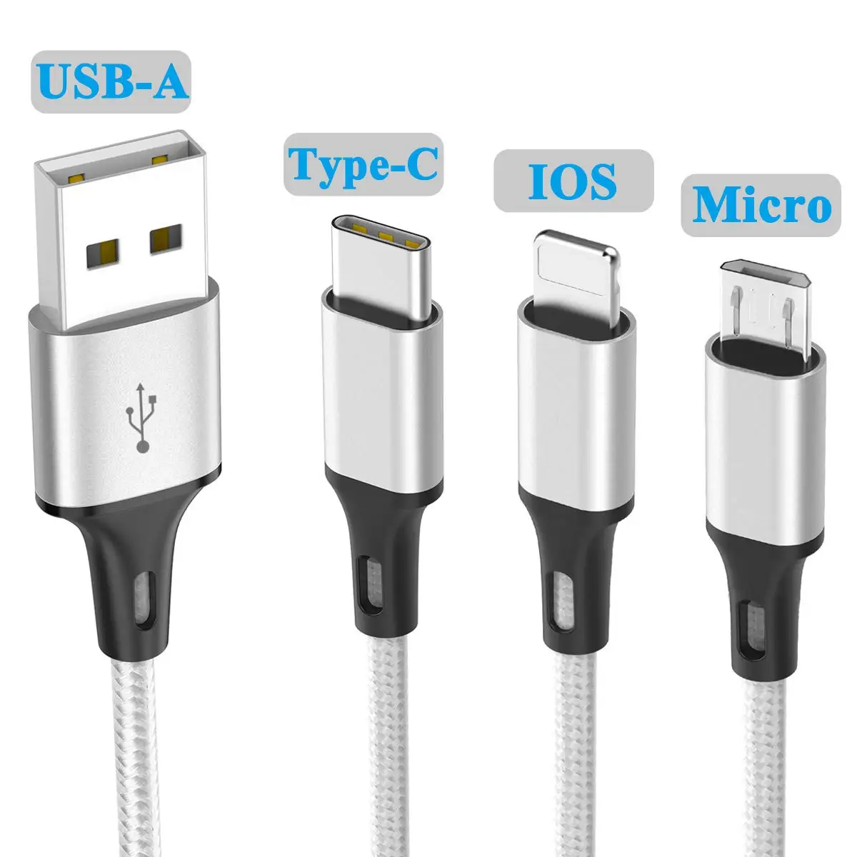 Este cable de carga mĂșltiple presenta un diseño 3 en 1 con construcciĂłn de nailon de aluminio, y ofrece conectores tipo C y micro USB. Proporciona una soluciĂłn duradera y prĂĄctica para cargar varios dispositivos simultĂĄneamente, lo que lo hace ideal para el hogar, la oficina y viajes.