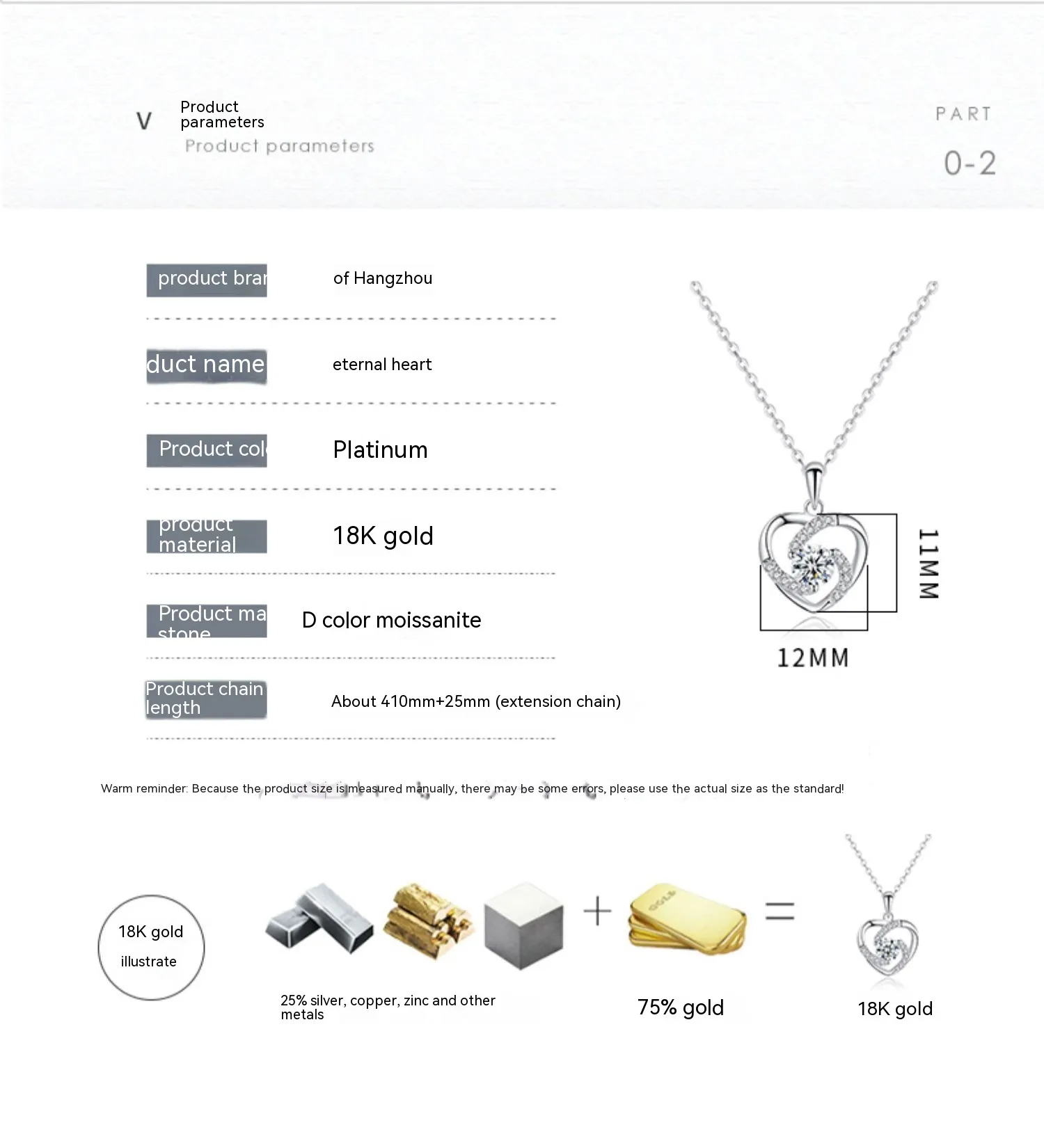 A: Colgante de oro blanco de 18 quilates (40 puntos de moissanita color D) + cadena en forma de O de oro de 18 quilates (aproximadamente 1,2 g) + certificado