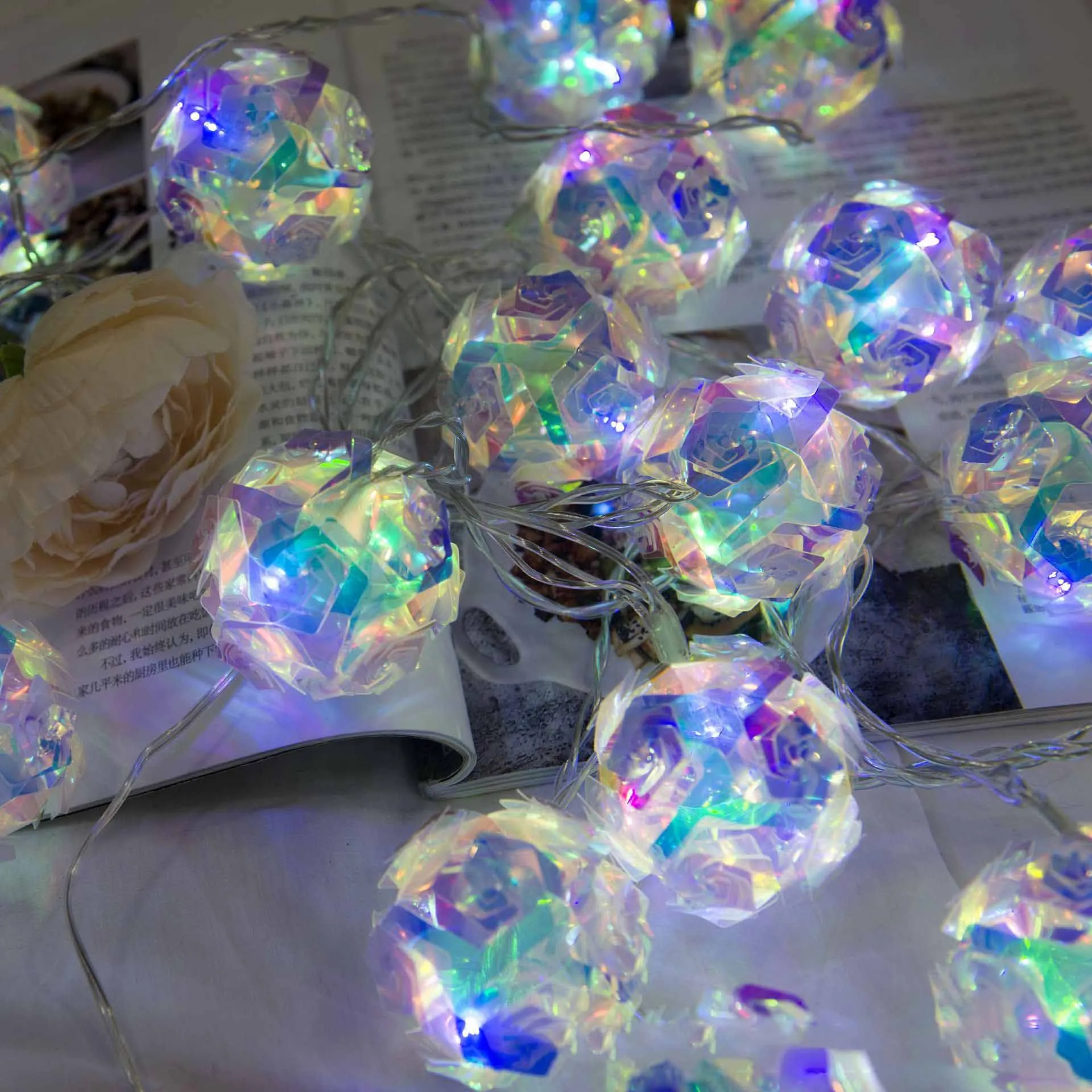 Cadena de luces LED con forma de bola de rosas de plástico PVC