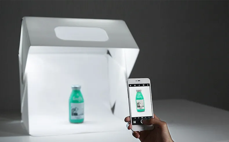 "Esta caja de luz hace que mis fotografías de productos se vean súper profesionales. ¡Los LED incorporados son brillantes y ajustables!"