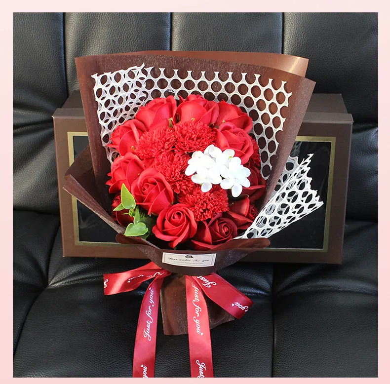 Cada rosa de jabón del ramo está impregnada de una fragancia ligera y romántica, lo que la hace perfecta para crear un ambiente relajante. La caja de regalo está cuidadosamente diseñada para realzar la belleza de las rosas, realzando la emoción y la elegancia del presente.