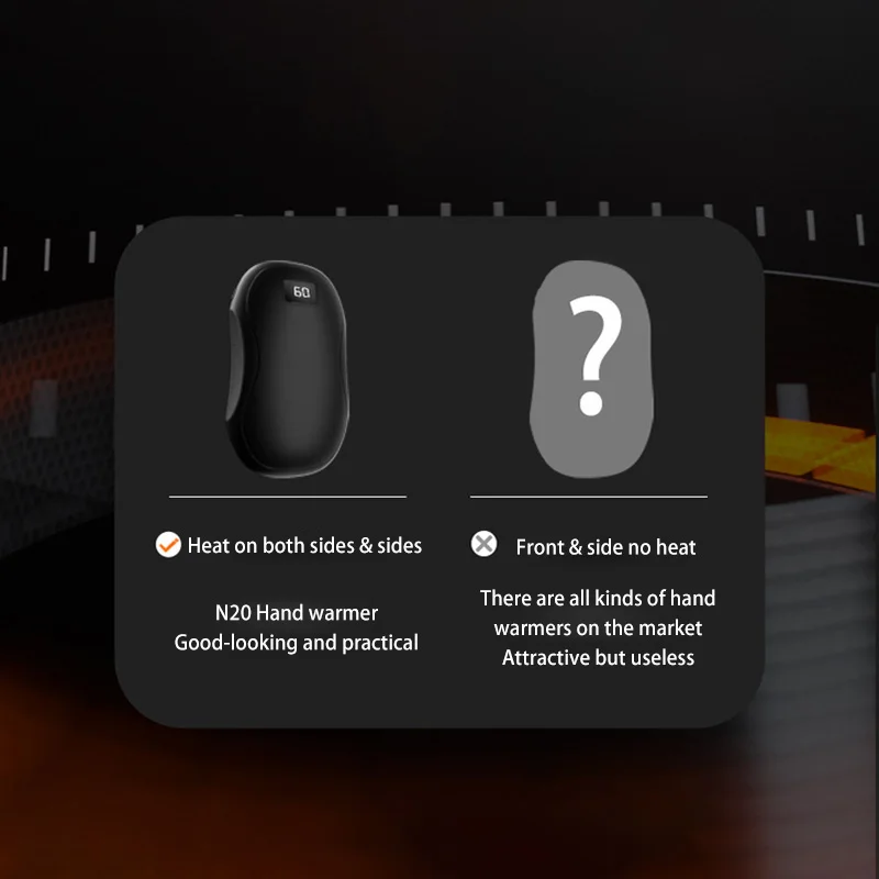 2. Calentador de manos USB multifunción: Con una batería externa integrada de 3500 mAh y una interfaz de salida USB, calienta tus manos y carga tus dispositivos al aire libre.