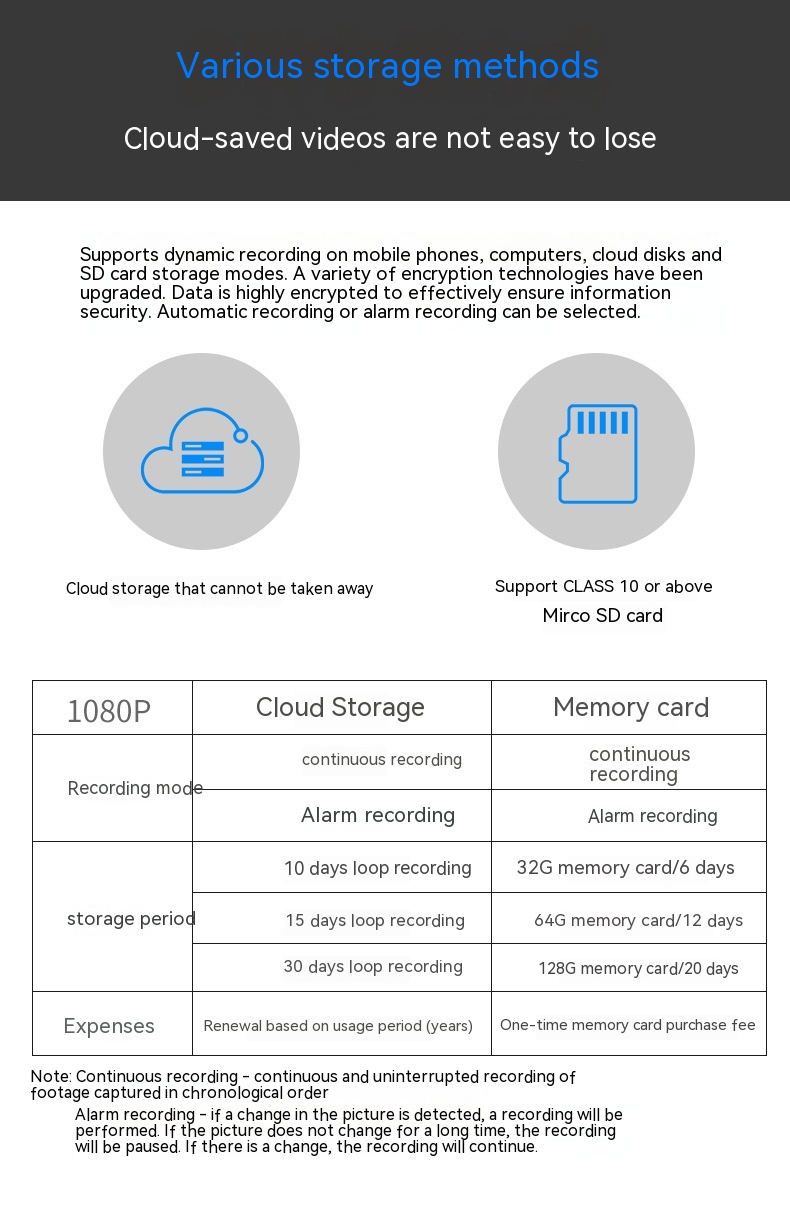Almacenamiento seguro: Elige entre almacenamiento local con una tarjeta microSD o almacenamiento en la nube para tus grabaciones. Ambas opciones ofrecen formas seguras y fiables de guardar tus grabaciones de vídeo.