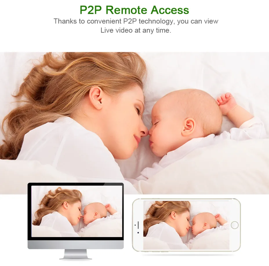 Con una sencilla conectividad inalámbrica, esta cámara de seguridad se integra a la perfección con su teléfono inteligente o tableta mediante una aplicación dedicada, brindando alertas en tiempo real y acceso a transmisión en vivo desde cualquier lugar. Su función de detección de movimiento envía alertas instantáneas al detectar movimiento, brindándole tranquilidad y manteniendo su hogar seguro las 24 horas, los 7 días de la semana. La lente gran angular de la cámara y la resolución HD garantizan una cobertura completa con imágenes nítidas, mientras que la visión nocturna por infrarrojos proporciona claridad hasta 30 pies en la oscuridad.
