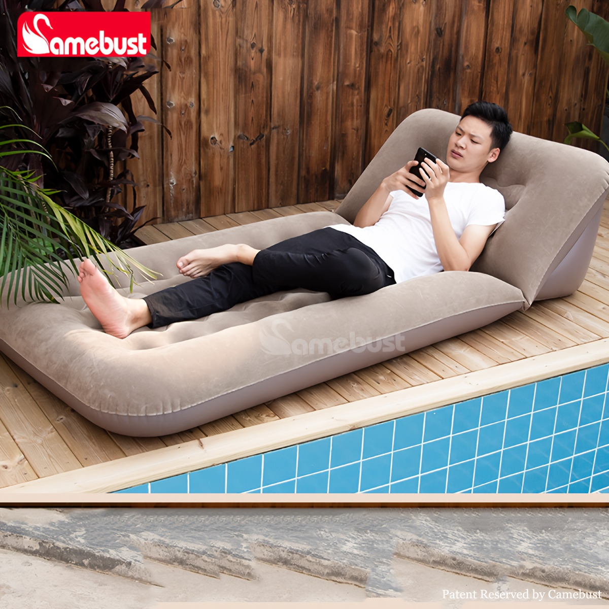 CAMEBUST Inflatable Flocked PVC Sofa – Single Foldable Air Mattress for Home and Outdoor Use