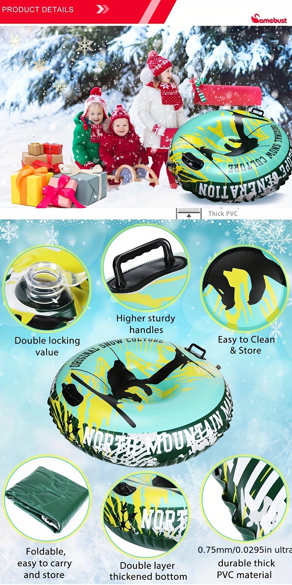 Perfect for both kids and adults, this inflatable snow tube is an essential addition to your winter sports gear, offering endless fun for family outings, holiday celebrations, and winter recreation.