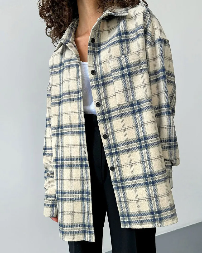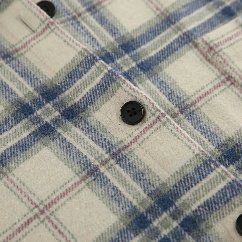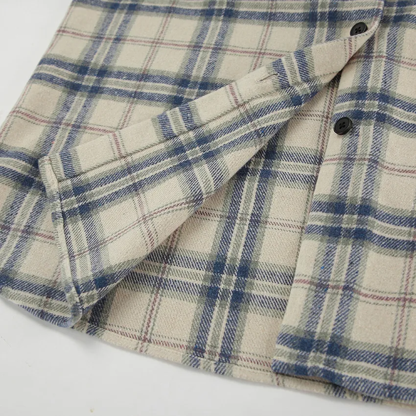 Características principales de la camisa de manga larga a cuadros con solapa holgada