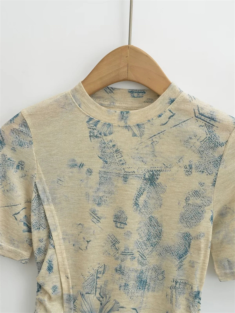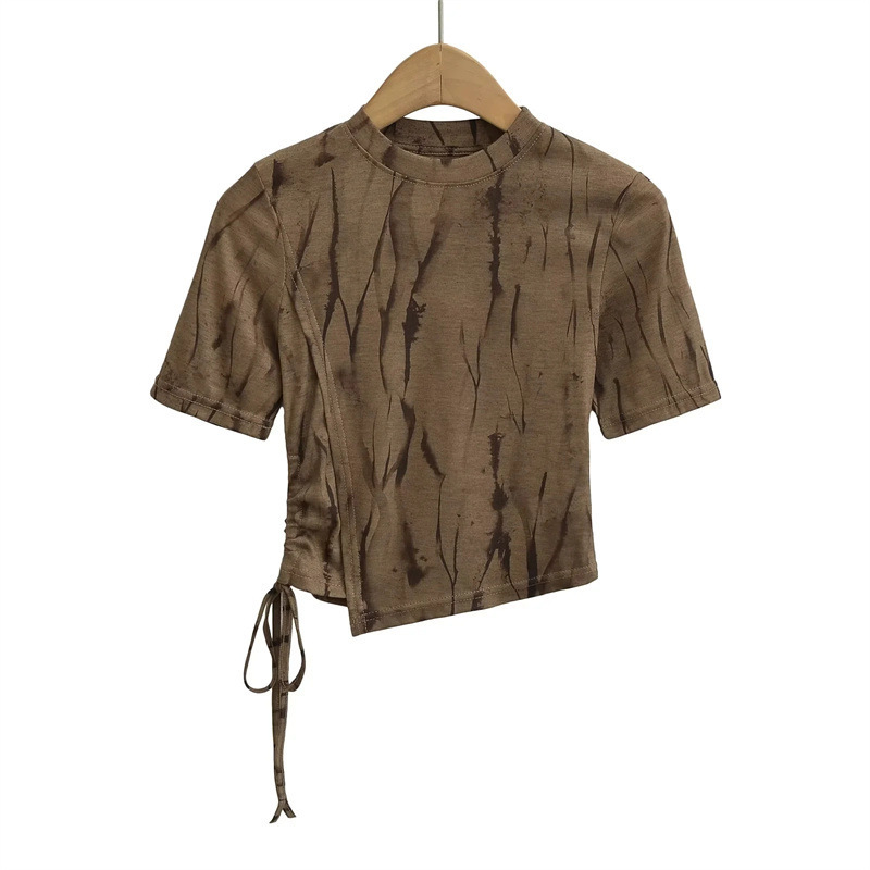 Esta camiseta no es solo una prenda de vestir; es una obra de arte que aporta un toque poético a cualquier armario. Las mangas cortas son perfectas para el calor del verano, y el corte único de hombros le da un toque moderno que se adapta fácilmente del día a la noche. Ya sea con jeans casuales para una salida diurna o con una falda elegante para un evento nocturno, la "Camiseta Asimétrica de Malla Entintada" promete realzar cualquier conjunto.