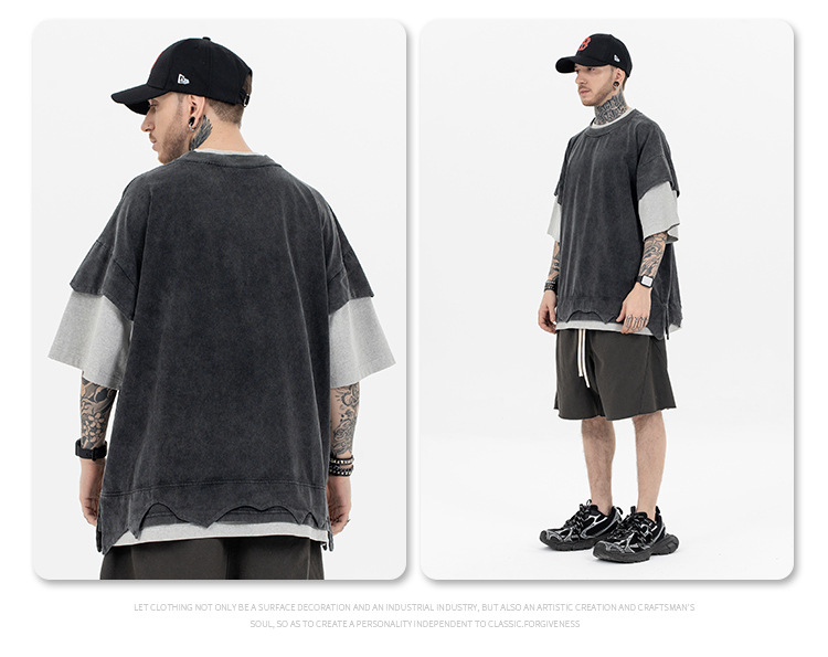 - Detalles desgastados: Con sus bordes desgastados y dobladillos sin rematar, esta camiseta ofrece una estética robusta y desgastada, perfecta para quienes aman el estilo retro y grunge.
