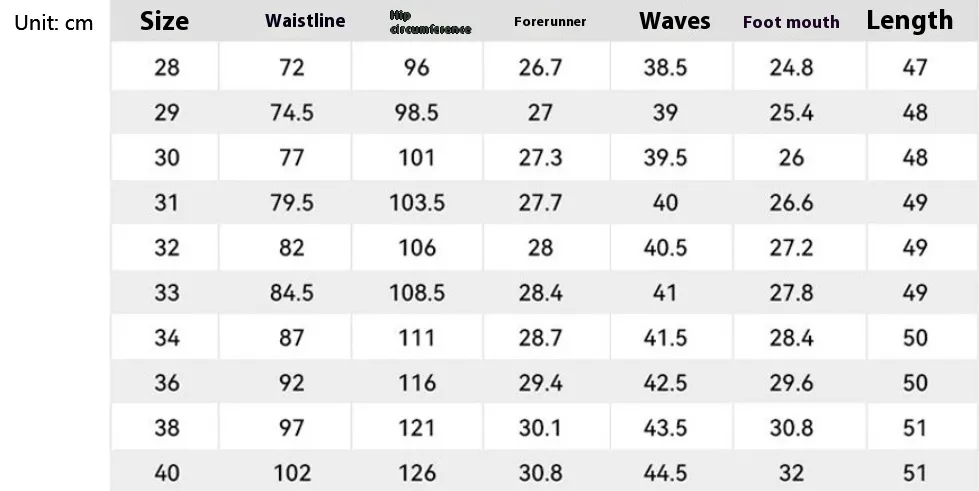 Size: 28, 29, 30, 31, 32, 33, 34, 36, 38