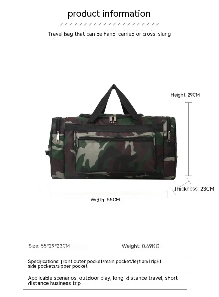 What sets the Camouflage Luggage apart from other travel bags is its versatility. It’s not just for hiking or camping — this bag is designed for a wide range of trips, whether you’re catching a flight, hopping on a train, or hitting the road. Its sturdy build and convenient features make it suitable for both urban and outdoor travel, offering flexibility for various travel scenarios.