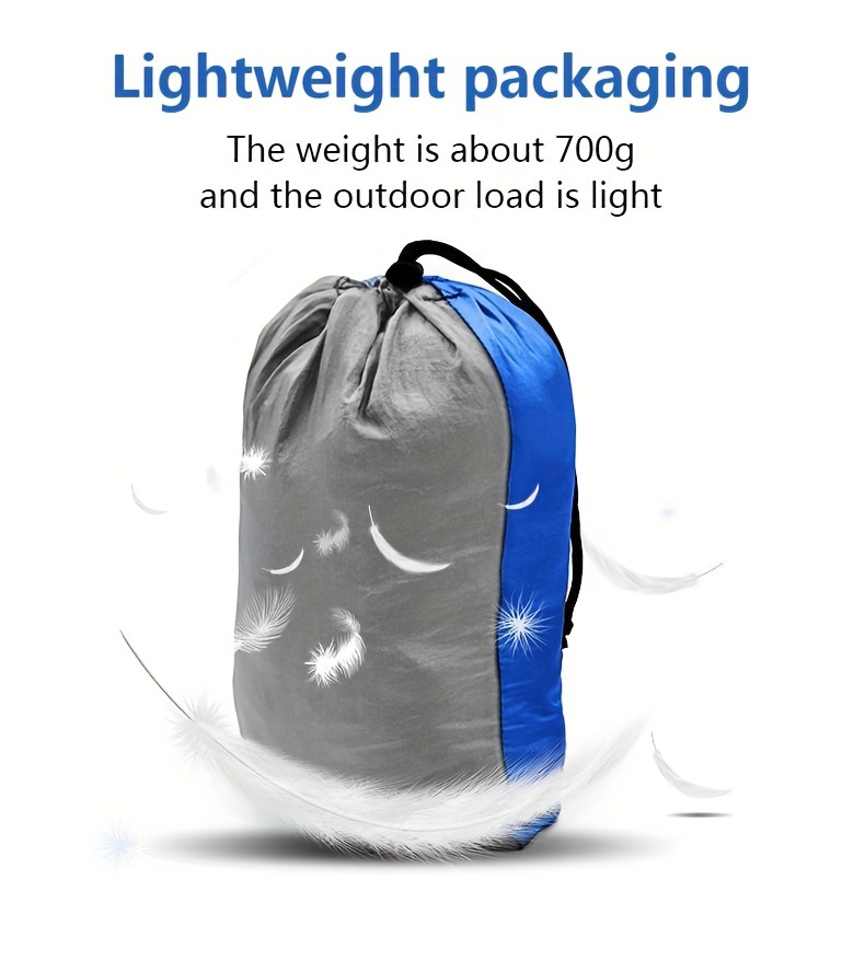 Constructed from high-quality, tear-resistant fabric, the Double Camping Hammock is both durable and lightweight, making it easy to carry on hikes, camping trips, and other outdoor adventures. The fabric is soft yet strong, providing comfort without compromising durability. This lightweight design ensures that you can bring the hammock along on any trip without adding unnecessary bulk to your gear. It also comes with a compact carrying bag, making it easy to pack and transport.