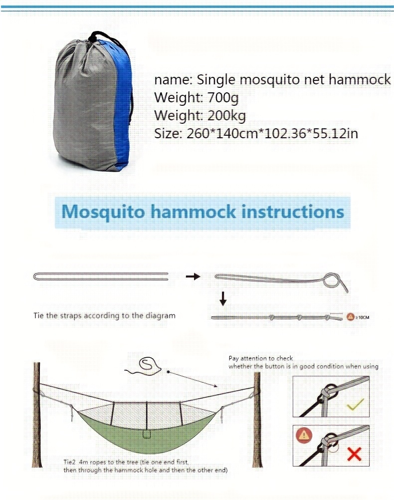 outdoor adventures. With its spacious design, protective mosquito net, and easy setup, this hammock allows you to relax and rest in the