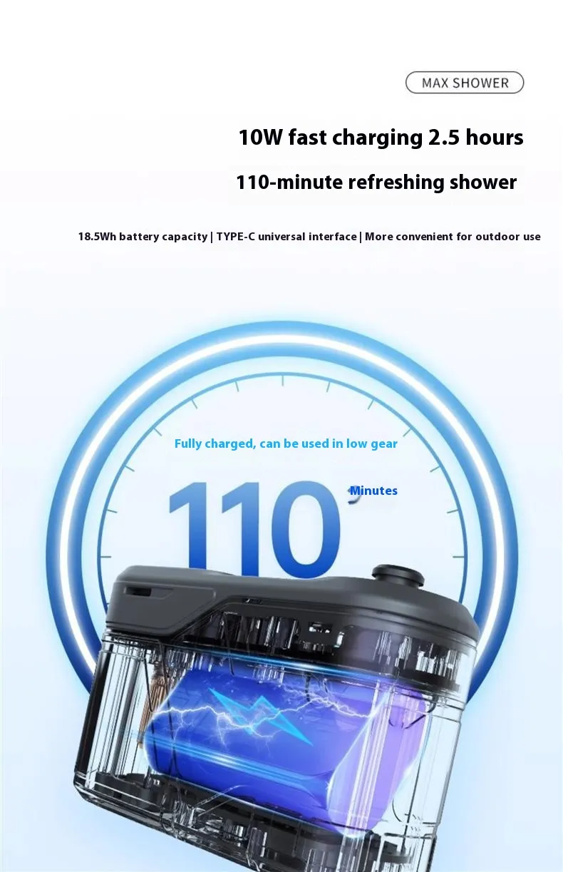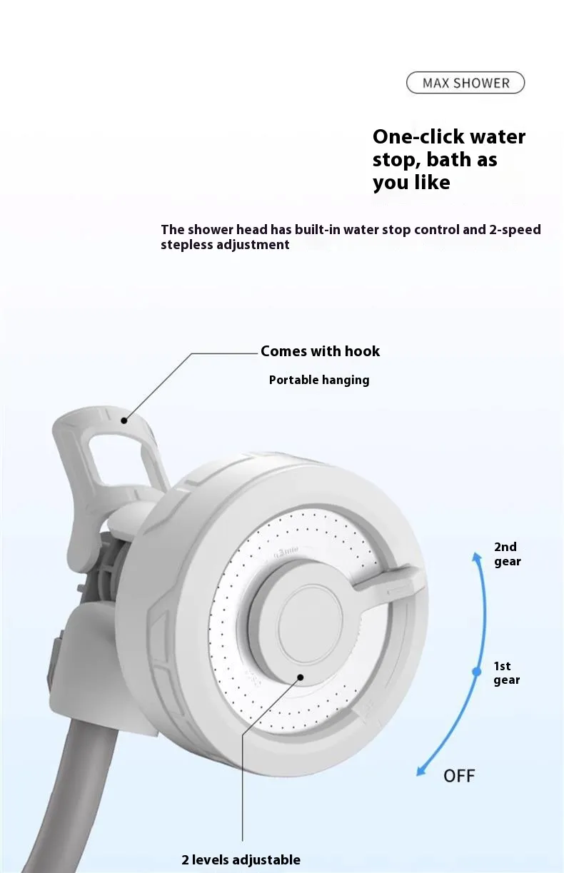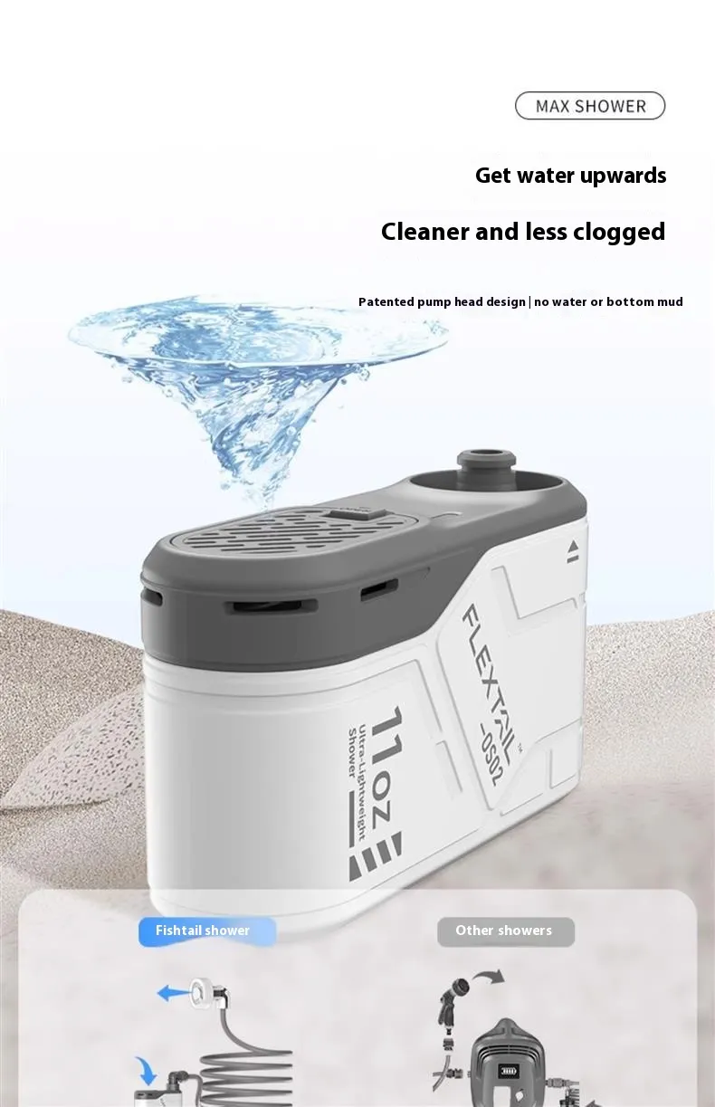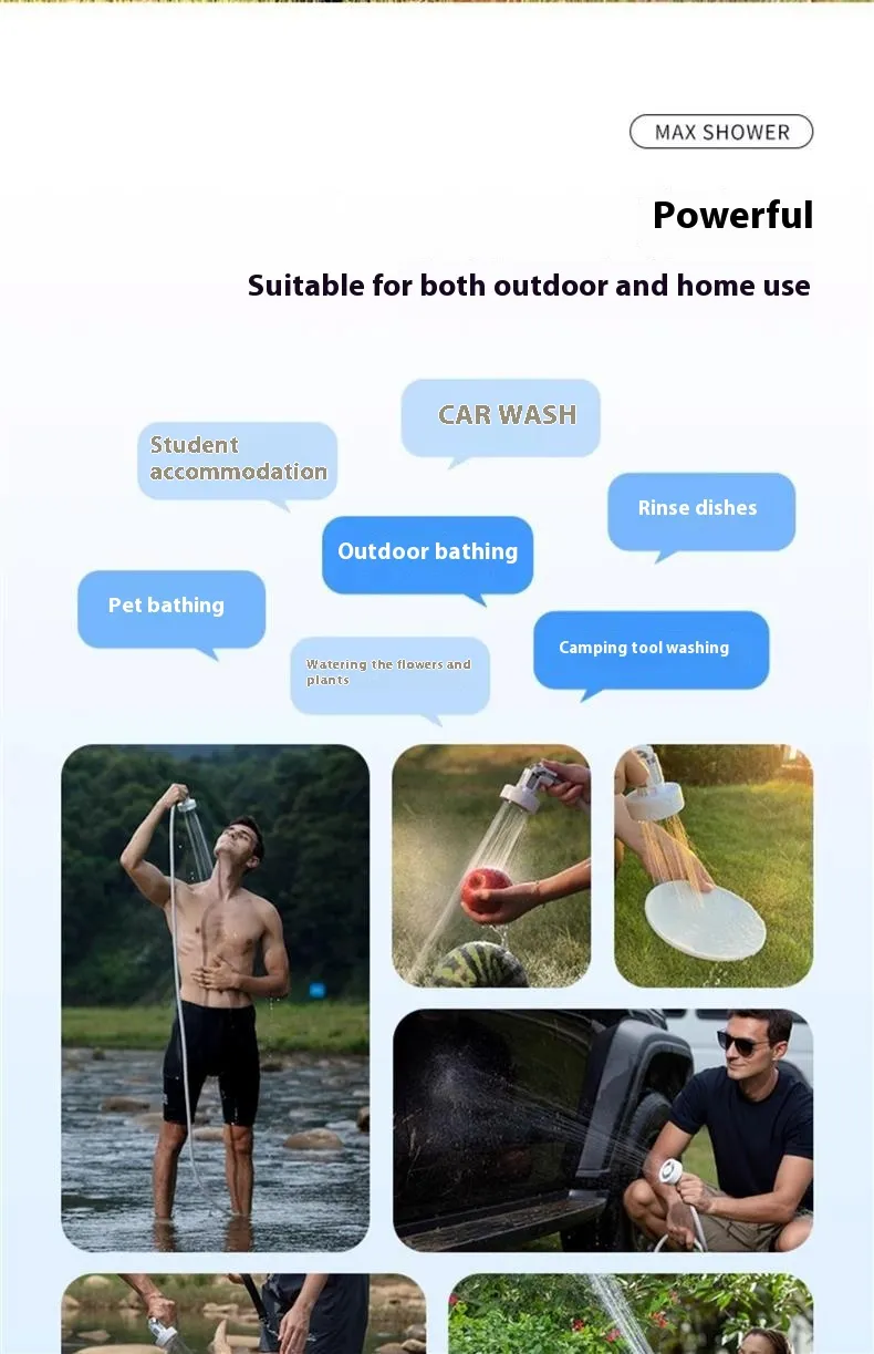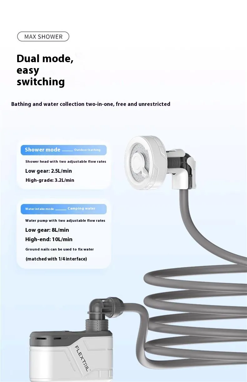 The Camping Shower Pump provides an efficient and convenient showering solution for those who enjoy outdoor activities. Powered by a rechargeable battery or via a USB connection, the pump draws water from a tank or nearby water source and delivers a steady flow for a satisfying shower experience. Whether you're washing off after a long hike or cleaning up at a campsite, this pump ensures an enjoyable, refreshing shower anytime.