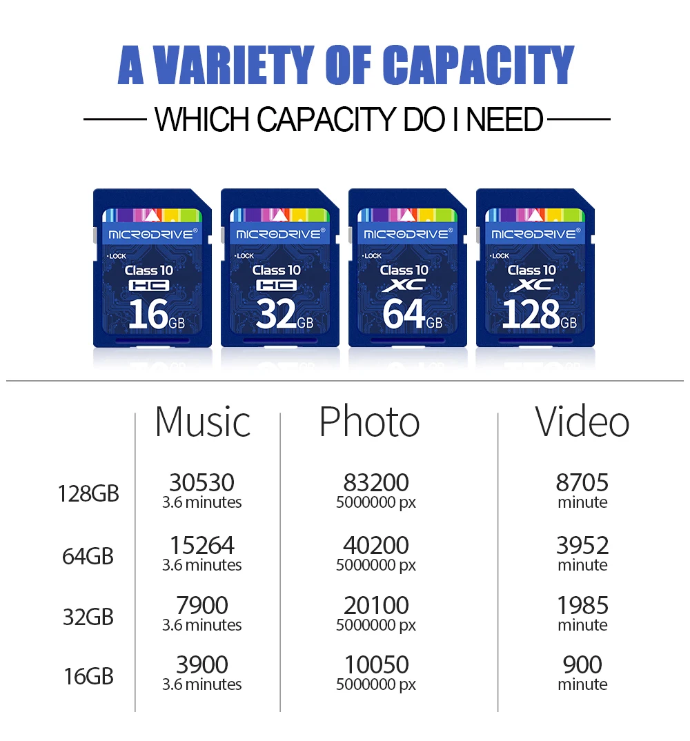 8GB/16GB/32GB=Class 10 speed U1