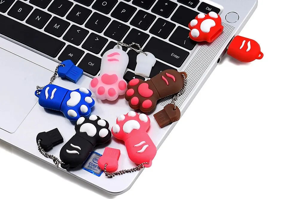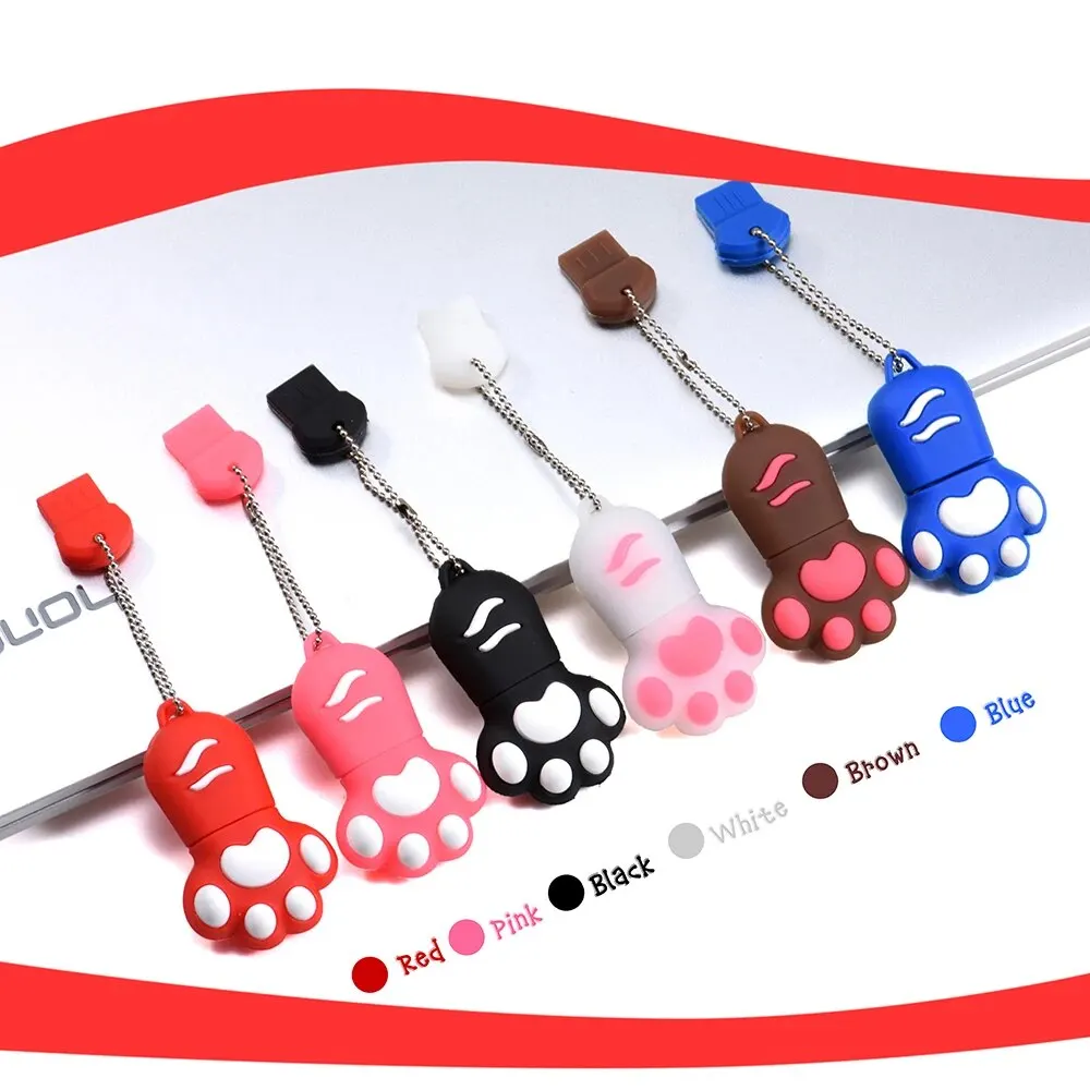 Capacity: 64GB, Color: Black - JASTER Cute Cat Claw USB Flash Drive 64GB Cartoon Memory Stick 32GB Creative Gift Pen Drive 16GB Pink Silicone External Storage