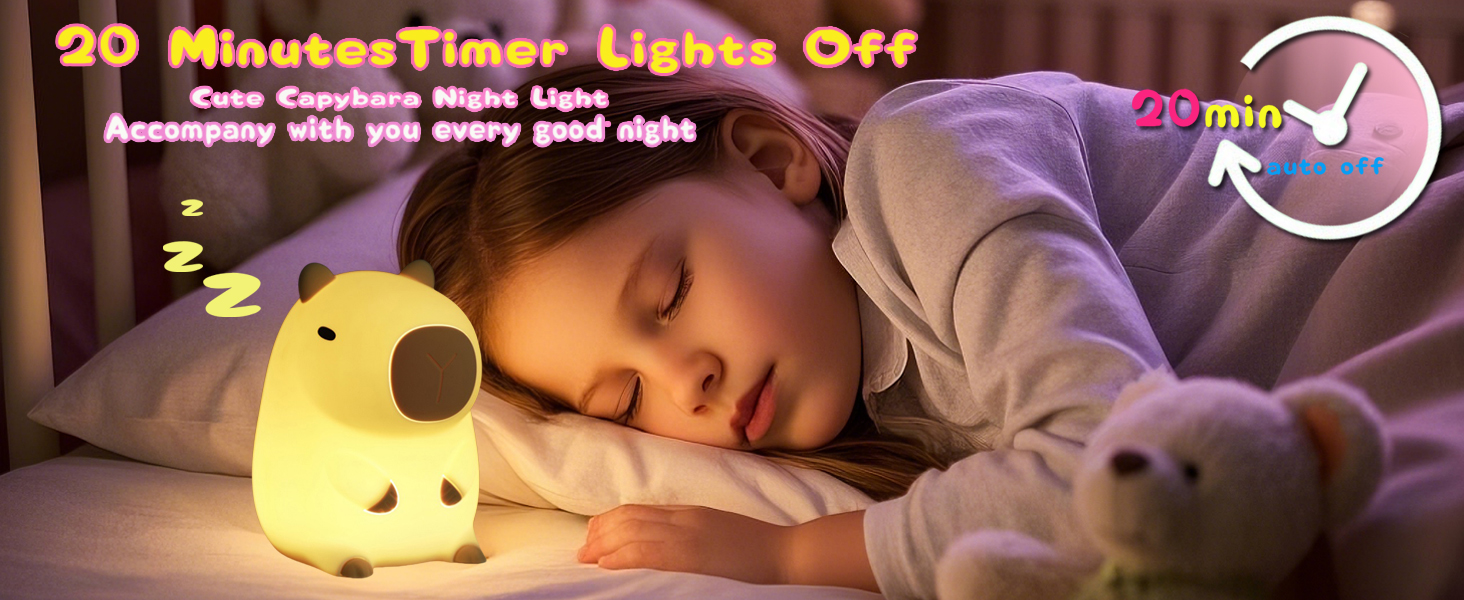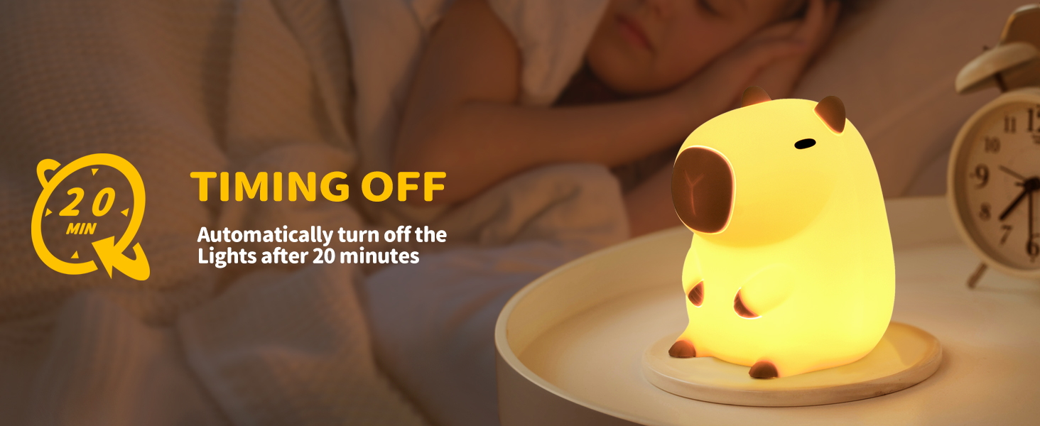 minute timer function, a cute bedtime experience! Let children no longer fear the dark night and sleep peacefullySoft! Funny!Cute! Squishy!Capybara Night Light!